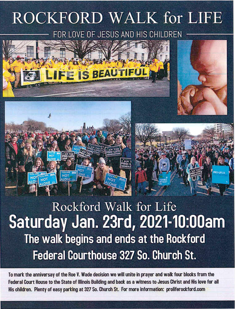 Rockford Walk for Life Posted bySt. James, BelvidereJanuary 8, 2021January 8, 2021Posted inWhat's New? Pro-Life Rockford Share this: Click to print (Opens in new window) Print Click to share on Facebook (Opens in new window) Facebook Click to share on X (Opens in new window) X Click to share on Pinterest (Opens in new window) Pinterest Published by St. James, Belvidere Saint James Catholic Church, Belvidere, IL View more posts
