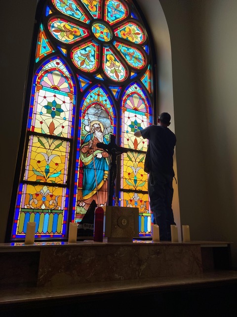 Thanks to the family who so generously provided the funding for the window repair and restoration, as well as the new church steeple,the work has begun on preserving our beautiful stained glass windows in the church for many years to come! Please remember this family in your prayers in thanksgiving for this much-needed gift to St. James Parish.
