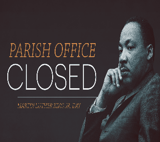 In recognition of Martin Luther King Day, the parish office will be closed on Monday, January 16th, and will re-open at 8:00 a.m. on Tuesday, January 17th.