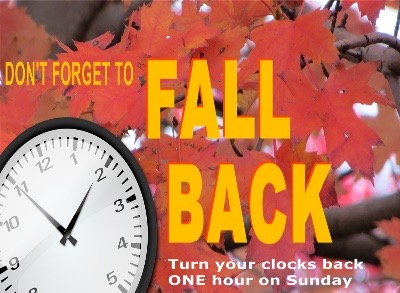 IT’S THAT TIME OF YEAR AGAIN!Remember to set your clocksBACK ONE HOURBefore going to bed on Saturday, November 6th!